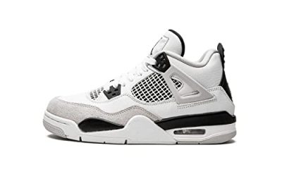 The Jordan Youth Air Jordan 4 Retro GS 408452 111 Military Black is a youth sizing version of Michael Jordan's fourth signature shoe. It replicates the iconic color block design of the original 'Military Blue' style from 1989. This shoe features a white leather base with a grey suede forefoot overlay, complemented by black accents on the TPU eyelets, heel counter, and underlays beneath the netting. With its stylish design and comfortable fit, it appeals to both young sneaker enthusiasts and adults who appreciate the nostalgia of classic Air Jordans. However, some customers have reported quality control issues and manufacturing defects, such as blue stains and damaged rubber. Overall, the shoe offers a fashionable look and comfortable experience for those who appreciate retro-inspired sneakers.