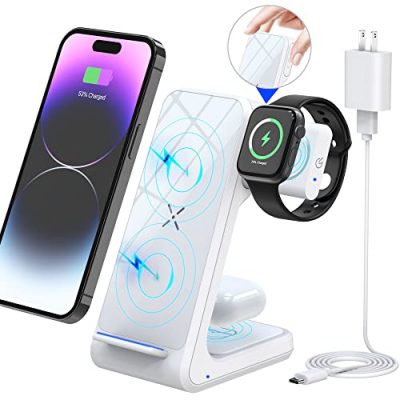 The WAITIEE Wireless Charger 3 in 1 is a convenient and stylish charging station for Apple devices. With fast charging capabilities and multiple protection mechanisms, it ensures efficient and safe charging for your devices. The non-slip and tilt angle design provides a secure grip and optimal viewing angles. While it may require an Apple charger for Watch charging and has some challenges with cord management, overall it offers a sleek and efficient solution for charging multiple devices at once. Whether you need to charge your iPhone, AirPods, or Apple Watch, this wireless charger station has got you covered.