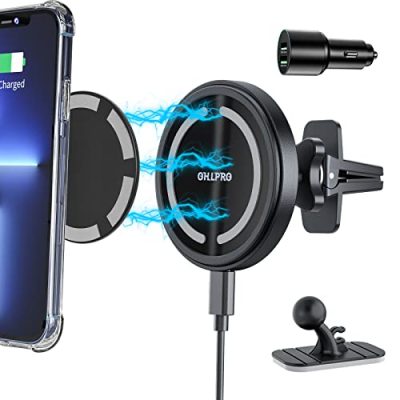 The OHLPRO Magnetic Wireless Car Charger is specifically designed for the iPhone 12/13/14 series. It features fast magnetic charging with auto-alignment, allowing for a stable and efficient charging experience. The charger can be easily installed using either the air vent or dashboard mounting options. Its 360-degree rotation and one-handed operation make it convenient to use in any orientation. The charger is made of high-quality materials to ensure durability and comes with a lifetime warranty. With a 4.4/5 customer rating, it has received positive reviews for its strong magnet, sturdy design, and versatility. However, some customers have reported issues with defective parts and intermittent charging. Overall, the OHLPRO Magnetic Wireless Car Charger is a reliable option for iPhone users looking for a convenient and fast charging solution while on the go.