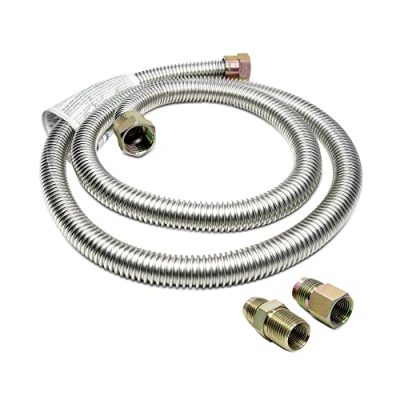 The Hosile 72" Flexible Gas Line Kit is a high-quality gas line kit designed for use in various applications such as gas dryers, gas stoves, and gas ranges. This kit includes a 72" long flexible gas line with a 5/8" outer dimension and a 1/2" inner diameter. It also comes with multiple threaded connectors and a set of threaded tape for easy installation. The stainless steel design with corrugation provides durability and flexibility, allowing the gas line to be easily installed in narrow spaces. With excellent materials and 100% leak tested, this gas line kit ensures air tightness and corrosion resistance. It is backed by a 1-year warranty and excellent after-sales service. Overall, the Hosile 72" Flexible Gas Line Kit is a reliable and convenient solution for connecting your gas appliances.