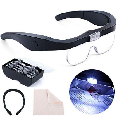 The YOCTOSUN LED Head Magnifier is a versatile and easy-to-use magnifying glasses that can be worn as glasses or as a headband. It features an interchangeable lens design, allowing you to switch between 5 different magnification powers with a simple click and release system. The scratch-resistant acrylic lenses reduce weight while providing high clarity. It is equipped with adjustable brightness levels, providing excellent light for illuminating detailed surfaces. The magnifier also has a rechargeable design with a built-in lithium battery, eliminating the need for buying batteries. With its high magnification power and comfortable design, it is perfect for various close work activities such as sewing, crafts, beauty, and more. The YOCTOSUN LED Head Magnifier has received positive reviews from customers, with a customer rating of 4.5/5.