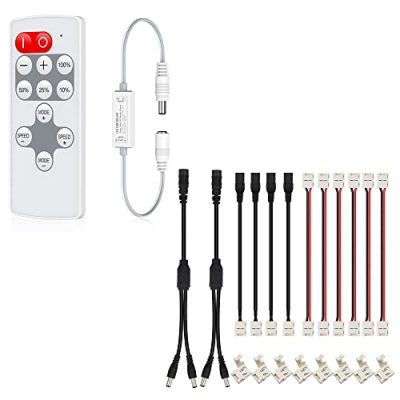 The HitLights Mini Remote Controller + 2Pin 8mm LED Strip Connector Kit is the perfect solution to control single color LED strip lights. With easy installation and a complete DIY accessory kit, it allows you to effortlessly hang up LED light strips on your furniture, cabinets, and more. The kit includes 8 gapless connectors, 6 LED jumper connectors, 4 female and DC connectors, and 2 2-way DC splitters, providing all the necessary components for your LED light setup. The connector kit can meet almost all your needs and eliminates the need for welding or complex processes. Additionally, HitLights offers a quality warranty with a 90-day refund and 1-year warranty, ensuring excellent customer service.