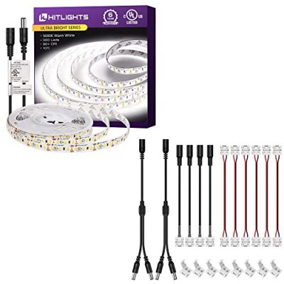 The HitLights 24V LED Strip Lights Warm White is a top-notch lighting solution for any space. With its high-quality construction, easy installation, and customizable features, this LED strip light offers both functionality and style. The warm white color temperature creates a cozy and inviting atmosphere, making it perfect for bedrooms, kitchen cabinets, and more. The included universal connectors provide flexibility in creating longer LED spans, while the 3M adhesive back tape ensures a secure and hassle-free installation process. With a 6-year warranty and UL-Listing for safety, you can shop with confidence knowing you’re getting a reliable and durable product. Illuminate your space with the brilliance of the HitLights LED Strip Lights.