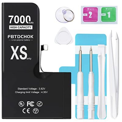 The FBTDCHOK 7000mAh Upgraded Replacement Battery is designed specifically for the iPhone Xs. With 163% more capacity than the original battery, this replacement battery offers extended power life. It is easy to install, and the complete repair tool kit includes all the necessary components. The Grade A+ cells ensure high-speed and efficient charging, with multiple protections to prevent overcharging, overheating, and over-discharging. Tested and certified by third-party security organizations, you can trust the safety and reliability of this battery. The FBTDCHOK 7000mAh Replacement Battery comes with a 24-month warranty and 30-day money-back guarantee, providing great service and support. Please check your phone model before purchasing. Score: 8.2/10