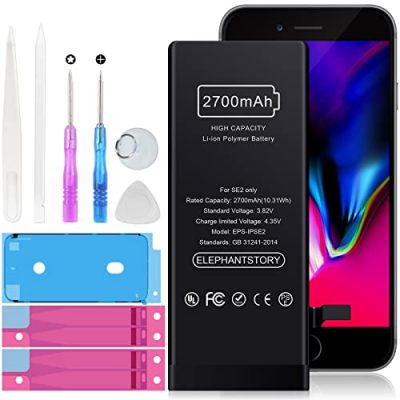 The ElephantStory Battery for iPhone SE2020 Replacement is a high-quality battery upgrade for the iPhone SE2020. It is equipped with Grade A rated battery cells that have UL, FCC, CE, ROHS certification. The battery uses an IC chip to prevent overcharging, over-discharging, short-circuiting, and over-heating, ensuring safety for both the user and device. It is compatible with iPhone SE2020 models A1662, A1723, and A1724. The kit includes a complete repair tool kit and instructions for easy installation. With a capacity of 2700mAh, this replacement battery offers a higher capacity than the original, providing longer battery life. With a rating of 4.0/5, customers appreciate the improved battery life and ease of installation.