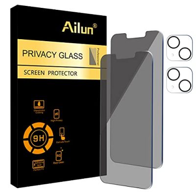 The Ailun Privacy Screen Protector is a 2 pack tempered glass screen protector designed for iPhone 14, iPhone 13, and iPhone 13 Pro. It provides maximum protection from scratches, scrapes, and bumps. The privacy feature ensures that your personal and sensitive information remains hidden from strangers, as the screen is only visible to those directly in front of it. The screen protector is also hydrophobic and oleophobic, protecting against sweat and oil residue. With easy installation and high touch-screen accuracy, this product is a great choice for maintaining privacy on your iPhone. It is compatible with most cases and comes with online video installation instructions.