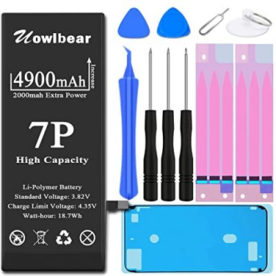 The uowlbear Battery for iPhone 7 Plus is a high capacity battery replacement designed specifically for the iPhone 7 Plus models A1661, A1784, and A1785. With a capacity of 4900mAh, this battery provides 69% more power than the original battery, allowing for extended usage time. The battery is manufactured by professional manufacturers with years of experience and is tested under strict quality control standards. It is also equipped with protection against overcharging, over-discharging, over-heating, and short-circuiting. The package includes a complete set of replacement tools, adhesive strips, and video instructions for easy installation. The battery has a 0 cycle and can withstand over 900 charging cycles. Overall, it is a reliable and high-quality replacement option for iPhone 7 Plus users.