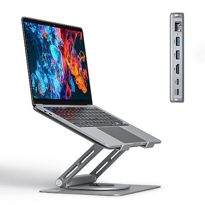 The TOBENONE USB C Laptop Docking Station Stand is a versatile and efficient accessory for MacBook Pro, MacBook Air, Dell, HP, Surface, Lenovo, and more. It combines the functions of a docking station and a laptop stand, providing increased productivity and comfort. The docking station supports 4K@60Hz display output, offers multiple ports including HDMI, USB 3.0, RJ45, and PD charging, and features a 360° rotating base for easy screen sharing. With a sturdy and protective design, height adjustability, and compatibility with various laptops, this docking station is a convenient solution for both home and travel use. It has received positive customer reviews for its functionality and build quality.
