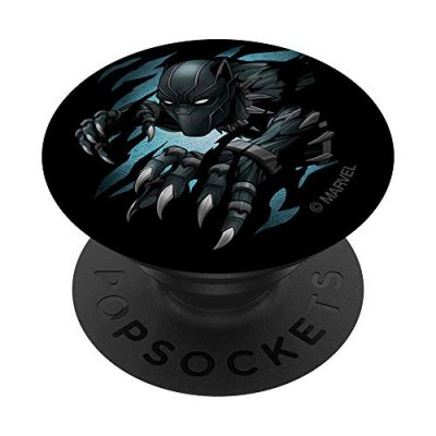 Enhance your phone or tablet with the Official Marvel Black Panther T'Challa Claw Marks PopSockets PopGrip. This versatile accessory serves as a grip holder, stand, and tablet holder, allowing you to enjoy hands-free viewing of videos, take group photos, and even participate in video calls. The PopGrip features a swappable top, allowing you to switch out the design or remove it for wireless charging. Its advanced adhesive lets you easily remove and reposition it on most devices and cases. Please note that it may not stick to silicone, waterproof, or highly textured cases. With its stylish Black Panther design, this PopGrip is the perfect accessory for any Marvel fan.