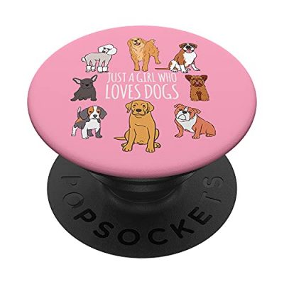 The Fun Cute Pink Just A Girl Who Loves Dogs PopSockets Swappable PopGrip is a must-have accessory for dog enthusiasts. Its adorable design, functionality, and ability to remove or switch out the top make it a versatile and fun addition to your mobile device. The stand feature is convenient for watching videos, taking photos, or video chatting handsfree. Just keep in mind that it may not work well with certain cases and is not compatible with Apple MagSafe wireless charger or iPhone 11 Pro models. Overall, this PopGrip is a great way to show off your love for dogs while adding style and functionality to your phone.