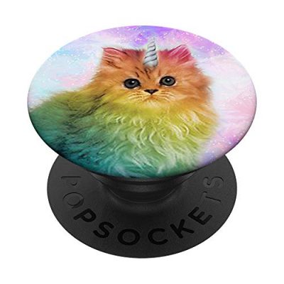 The Cute Caticorn Unicorn Cat Design Rainbow Galaxy Background PopSockets Swappable PopGrip is the perfect phone accessory for cat lovers. This cute and artistic phone grip adds a unique touch to your phone while providing extra convenience. It features a PopGrip with a swappable top, allowing you to customize the look of your phone. The expandable stand is great for watching videos, taking group photos, FaceTime, and Skype handsfree. With its advanced adhesive, you can easily remove and reposition the grip on most devices and cases. Please note that it is not compatible with Apple MagSafe wireless charger or MagSafe wallet. Overall, this PopGrip is a must-have for cat lovers who want to add a cute and functional accessory to their phone.