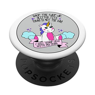 The Back The Fuck Up Glitter Tits Shank you With My Horn Unicorn PopSockets PopGrip is a must-have accessory for anyone who wants to add some personality to their mobile device. With its swappable top, expandable stand, and advanced adhesive, it offers both style and functionality. The design is bold and unique, making it a great conversation starter. While it may not adhere to all cases and is not compatible with Apple MagSafe accessories, it still provides a secure grip and allows for wireless charging. Overall, this PopSocket is a fun and practical accessory that brings a touch of magic to your everyday mobile experience.