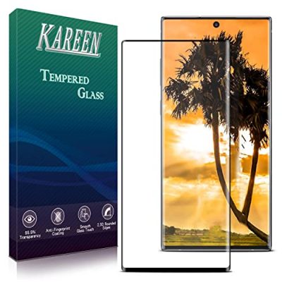 The KAREEN Tempered Glass Screen Protector is designed specifically for the Samsung Galaxy Note 10 Plus. It offers maximum scratch protection with its high quality 9H tempered-glass construction. This full coverage protector features a 2.5D rounded edge for comfort and maintains the original touch experience. The 99.99% HD clarity ensures clear visuals. With 100% bubble-free adhesives and easy installation, you won't have any residue when removed. The package includes all the necessary tools for installation, including a cleaning cloth, dust remover, and wipes. The KAREEN Tempered Glass Screen Protector is the perfect solution to keep your Samsung Galaxy Note 10 Plus screen protected.