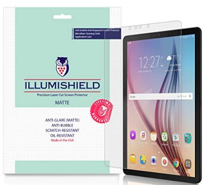 The ILLUMISHIELD Matte Screen Protector is designed to be compatible with Samsung Galaxy Tab S4 (10.5 inch, SM-T835). It features a matte anti-glare coating that refracts and disperses reflected light, providing a clear viewing experience without distortion. The high-quality PET film imported from Japan ensures durability and scratch resistance. The screen protector is easy to install with the included installation squeegee and cleaning cloth. It also comes with a lifetime warranty from iLLumiShield. This 2-pack of screen protectors is highly transparent and prevents bacterial elements, oil, and fingerprints.