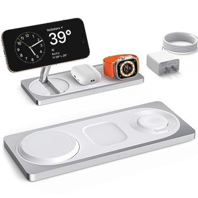 The Anker Foldable 3-in-1 Wireless Charging Station is a versatile charger that powers your iPhone, AirPods, and Apple Watch simultaneously. Its foldable design makes it travel-ready, and it is highly compatible with various devices. The adjustable charging angle enhances usability, allowing you to watch videos while charging. The charger comes with a Quick Charge 3.0 Charger, USB-A to USB-C cable, and an 18-month warranty. However, it does not include a USB-A to USB-C charging cable for the Apple Watch. Overall, the Anker Foldable 3-in-1 Wireless Charging Station is a convenient and efficient charging solution for multiple devices.