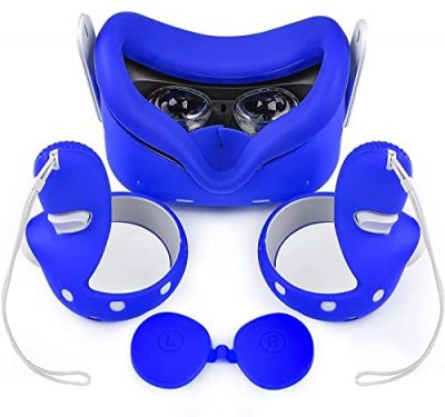 The YIZEIJOB Silicone Cover Set Accessories for Oculus Quest 2 provides comprehensive protection for your VR device. This 4-in-1 set includes a front shell cover, controller grips cover, lens protective cover, and anti-throw face pad. The silicone material is lightweight, durable, and eco-friendly. The set is designed with cooling and signal connection holes to prevent obstruction. The blue color adds a touch of style to your Oculus Quest 2. With reliable after-sales service, this accessory bundle is a must-have for any Oculus Quest 2 owner.