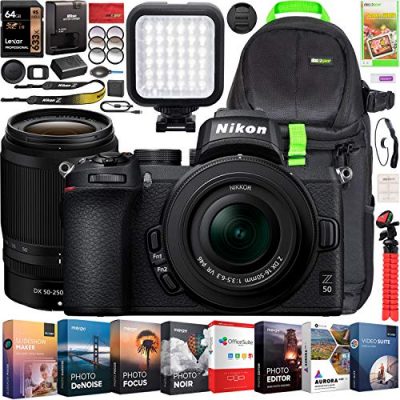 The Nikon Z50 Mirrorless Camera Bundle offers excellent value for both enthusiasts and beginners looking to step up their photography game. The camera body delivers outstanding image quality with its powerful image-processing engine and compatibility with a wide range of lenses. Its 4K UHD movie recording capabilities and cinematic features make it an excellent choice for videography as well. The camera’s wide AF coverage and eye-detection AF ensure impressive portraits, while the flip-down LCD screen is perfect for selfies and vlogging. With built-in Wi-Fi and Bluetooth, sharing photos is a breeze. However, some of the accessories included in the bundle may be of lower quality, and the bag may not comfortably accommodate all gear. Overall, the Nikon Z50 Mirrorless Camera Bundle is a solid choice for capturing incredible moments.
