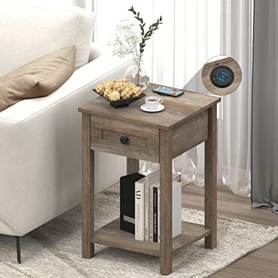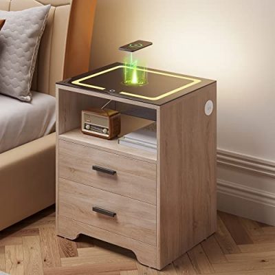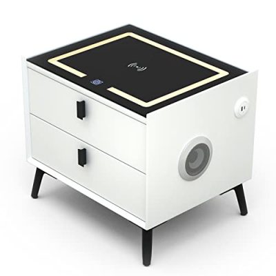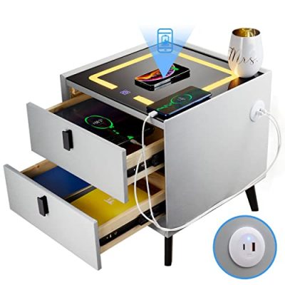 The Wmoisnuos Smart Nightstand is a super smart and modern end table that brings convenience and style to your bedroom or living room. With wireless charging, USB and Type-C charging ports, and adjustable LED lights, this nightstand is packed with features that make life easier. The wireless charging capability allows you to charge your phone while you sleep, and the LED lights provide a gentle glow to protect your eyes when you get up at night. The nightstand also has two storage drawers for keeping your essentials organized. It is easy to assemble and comes in a sleek grey color. Upgrade your bedside experience with this smart and functional nightstand.