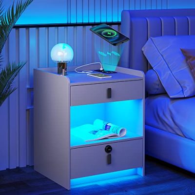 The Gurexl RGB Nightstand is a modern and stylish bedside table that offers wireless charging, USB ports, and 24 color dimmable LED lights. With a compact design and ample storage space, it is suitable for any room. The nightstand is easy to assemble and comes with a Human Body Sensor function that automatically turns on the LED light when you approach. It is available in Rgb Grey color and has dimensions of 15.70Lx19.60Wx22.80H. Customers have praised the quality of the product and the fun and easy-to-change lights. However, there have been some complaints about the noise from the plug and the difficulty in assembling the nightstand.