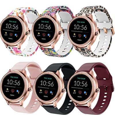 The ViCRiOR Bands are specially designed for Fossil Women’s Gen 5E 42mm and Gen 6 42mm Smart Watches, as well as Fossil Q Venture Gen 3/Gen 4/HR Gen 4 and Fossil Women’s Gen 4 Sport. Made of washable and durable silicone material, these bands are soft, lightweight, and comfortable to wear. They are easy to adjust and come with an aluminum buckle for secure installation. With quick release spring bars, you can easily switch out the bands without any tools. The ViCRiOR Bands feature a fadeless pattern printed floral design, making them a fashionable choice for any occasion. They are available in a pack of 6 different colors. Overall, these replacement bands provide a stylish and comfortable option for Fossil smartwatch users.