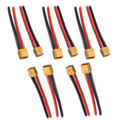 - Includes 5pcs XT60 XT60H male connector plugs with 12AWG 10cm silicone wire.