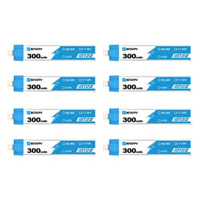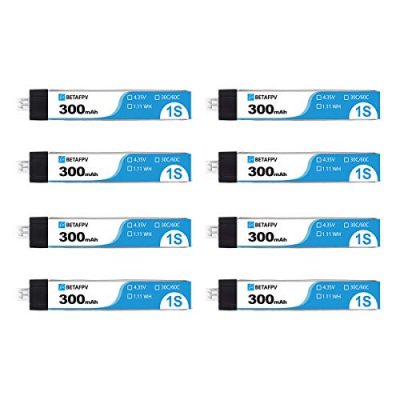 The BETAFPV 8pcs 300mAh 1S Lipo Battery is a high-quality and reliable power source for 1S RC racing FPV whoop drones and quadcopters. With a capacity of 300mAh and a discharge rate of 30C, this battery provides longer flight times and safer charging situations. It is compatible with the JST-PH2.0 PowerWhoop connector, making it an ideal choice for Tiny Whoop Blade inductrix. The upgraded version offers more power and a flight time of up to 5 minutes and 10 seconds in Beta65s BNF. However, it is important to note that proper care should be taken to avoid overcharging, over-discharging, high temperature exposure, and contact with fire or water. Overall, this BETAFPV Lipo battery offers a reliable and powerful performance for FPV enthusiasts.
