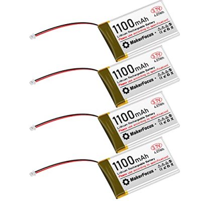 The MakerFocus 4pcs 3.7V 1100mAh Lithium Rechargeable Battery is a high-capacity battery designed for use with the Ar duino Nodemcu ESP32 Development Board. It features built-in protection against over-discharge, overcharge, and short circuit. With a recommended charging current of 0.2A and a discharge current of 0.5A, this battery provides reliable power for your projects. It also comes with insulated rubber tape and a micro JST 1.25 plug for easy connectivity. The battery has a light silver color and compact dimensions of 1.77Lx0.98Wx0.39H. Please note that the overcurrent protection may be damaged if used with large currents. Additionally, some users have reported lower actual capacity than advertised.