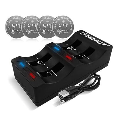 The CT-ENERGY Lithium Coin Button Cells Battery Charger is a convenient and efficient charger for various rechargeable coin batteries. With 2 charging currents and the ability to charge 4 packs of batteries simultaneously, this charger is ideal for powering electronic devices with a high working voltage. It uses lithium battery technology, allowing for more than 500 recharge cycles. The charger can be easily connected to USB ports, laptops, power banks, or any DC 5V adaptor. It takes only 2 hours to fully charge a Lir2032 battery, making it a fast-charging option. The charger comes with 4 pack of 3.6V Lir2032 rechargeable batteries, replacing the need for disposable batteries. However, some customers have reported issues with the battery life and charging performance.