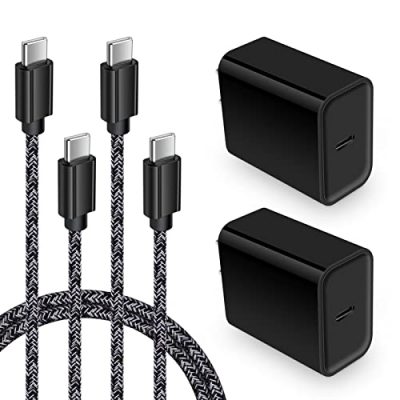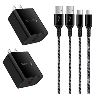 The Type C Charger Fast Charger Block Wall Plug and Android USB C Cord C Charger Cable is a reliable and portable charging solution for various devices, including Samsung Galaxy S and Note series, Motorola Moto G, LG, Google Pixel, OnePlus, and more. The charger supports fast charging and simultaneous data transfer. It is made of high-quality materials to ensure safety and protection against surges and short circuits. The compact design makes it ideal for home, work, travel, and car use. The package includes two USB Wall Chargers and two USB C Cables.