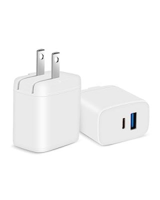 The [2 Pack] USB C Wall Charger Block is a fast charger that can simultaneously charge two devices. Its dual port design includes a USB-C port for charging iPhone 13 rapidly and a USB-A port for PD fast charging other models. The charger offers universal compatibility with a wide range of devices including iPhone, iPad, Samsung, Pixel, LG, Sony, MacBook, AirPods, and Apple Watch. With its foldable plug and compact size, it is convenient for home, office, and travel use. The charger is equipped with advanced intelligent chips for safe charging, protecting devices from overheating, overcharging, short circuits, and overvoltage.