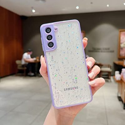 The Compatible with Samsung Galaxy S21 Case is specially designed for Samsung Galaxy S21 6.2 ''. It features a transparent design that showcases the original color of your phone while still providing excellent protection. The case has a cute Bling Star style that gives your phone a sparkly glitter look. Made of high-quality silicone TPU material, it is flexible, durable, and offers a smooth touch feeling. The case is also fingerprint-resistant, supports wireless charging, and allows easy access to all ports, buttons, speakers, and cameras. With its precise cut and easy installation/removal, it offers a hassle-free experience. The case is available in a stylish Purple color.