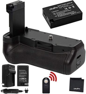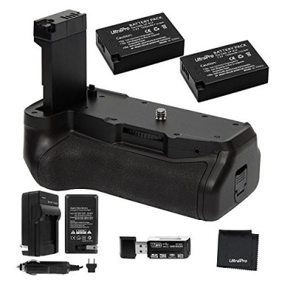 The UltraPro Battery Grip Bundle is a great addition for Canon Rebel T7i, X9i, EOS 77D, 800D, and 9000D DSLR Cameras. With a non-slip grip and built-in secondary shutter, this battery grip improves functionality and comfort when shooting in vertical orientation. The bundle includes two high-capacity rechargeable batteries, allowing you to double your shooting time. Additionally, you can charge on the go with the AC/DC/Euro-Adapter Deluxe Travel Rapid Charger. The bundle also includes a USB Memory Card Reader and microfiber cloth for added convenience. Please note that the batteries are not decoded and will not display the remaining time. Overall, this battery grip bundle is a good value for the price and is highly recommended.