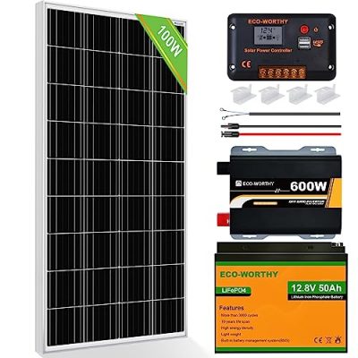 The ECO-WORTHY Solar Panel Kit with Battery and Inverter is a complete and versatile solution for providing power to your RV, home, boat, camper, and more. With a 100 Watt 12 Volt solar panel, a 30A charge controller, a 50Ah lithium battery, and a 600W premium solar inverter, this kit has everything you need to get started. The corrosion-resistant aluminum frame of the solar panel ensures durability and longevity, while the easy connection design makes installation a breeze. The pure sine wave inverter converts DC power into AC power, extending the usability of the system. With a 1-year product warranty and excellent customer service, ECO-WORTHY ensures customer satisfaction. Whether you need a backup power source or want to go off-grid, this solar panel kit is a reliable choice.