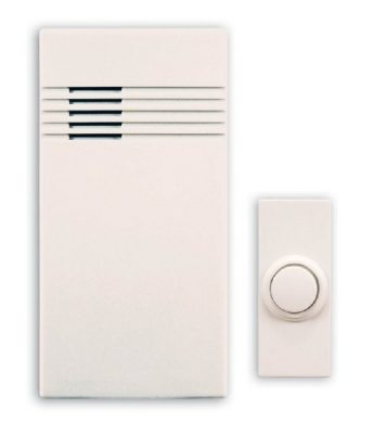 The Heath Zenith SL-7750-03 Wireless Battery Operated Door Chime Kit is a convenient and easy-to-install doorbell system. This kit includes an off-white cover, with the batteries required for operation. It has a transmission range of up to 100 ft and comes with a 1-year warranty. The door chime has a 2 note melody for the front entrance and a 1 note melody for the rear entrance. It is a multi-function kit with a dimension of 8.30Lx5.40Wx1.30H. The kit has received a customer rating of 3.4/5.