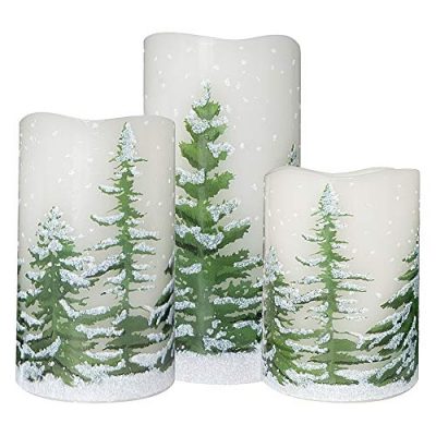 The Wondise Flickering Flameless Pillar Candles are a set of 3 Christmas-themed candles made of real wax. These candles feature a warm light LED flickering effect and come with Christmas Tree decals, making them perfect for holiday home decoration. Each candle operates on 3 AAA batteries (not included) and has a 6-hour timer function, turning on for 6 hours and automatically turning off. The candles are designed to be safe and clean, with no dripping wax or smoking worries. With their unique Christmas design, these candles make a great gift idea for friends or children. Overall, customers appreciate the beauty and cute winter scene that these candles bring to their homes.