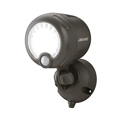 The Beams MB360XT 200 Lumen Wireless Battery Operated Powered Motion Sensing LED Spotlight is a next generation battery LED spotlight that provides 200 lumens of bright outdoor security lighting. Its unique reflective face spreads the light to create a wider coverage area, making it ideal for large areas. With a bold, durable, weatherproof design, this spotlight can be used as a reliable outdoor spotlight. It features motion activation, auto shut off, and a light sensor to prolong battery life. Installation is quick and easy, requiring no electrician. The brown spotlight has a dimension of 3.50Lx4.42Wx6.50H and is available in a 1-pack.