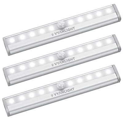 Illuminate your dark spaces with the VYANLIGHT Motion Sensor LED Lights. These motion-activated lights are perfect for closets, cabinets, hallways, and more. Powered by 4 AAA batteries, they are easy to install with their magnetic strip. The lights turn on within 9 feet of motion and automatically turn off after 15 seconds of inactivity. With their durable construction and hands-free operation, these lights are a practical solution for lighting compact spaces and dark corners.
