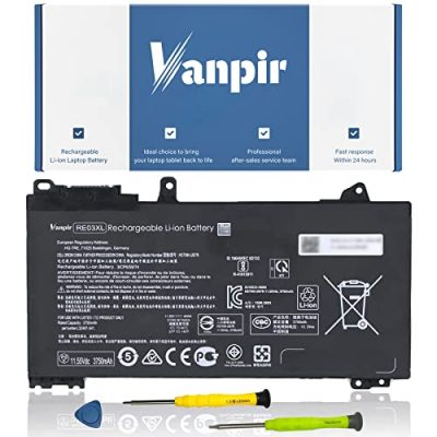 The Vanpir RE03XL L32656-005 Laptop Battery is a compatible replacement battery for various HP ProBook models. With a voltage of 11.55V and capacity of 45Wh 3750mAh, this Li-ion battery provides improved battery life and allows for longer usage between charges. The battery is a direct replacement for the original battery and is compatible with a wide range of HP ProBook and ZHAN 66 Pro laptop models. It comes with instructions for installation and usage, including the need to fully discharge and recharge the battery a few times to optimize its performance. The battery has received positive customer reviews for its affordable price, easy installation, and reliable performance.