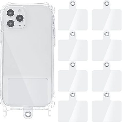 The 8 Pieces Phone Lanyard Patch is a universal phone tether that provides drop protection for your cellphone. It is designed to fit most smartphones and prevents them from dropping. The pad is easy to install without any tools and doesn't clog the charging hole, allowing for easy charging. Made of quality soft plastic, these tethers are reliable and durable. They come in a pack of 8, providing ample replacements or sharing with friends and family. The tethers are designed without adhesive, eliminating any worries about leftover glue. With a rust-proof metal hook, they can be attached to your keys or wallet. The phone patch, when used with a lanyard, can be conveniently carried around your neck or wrist, safeguarding your phone from theft and keeping it within sight.