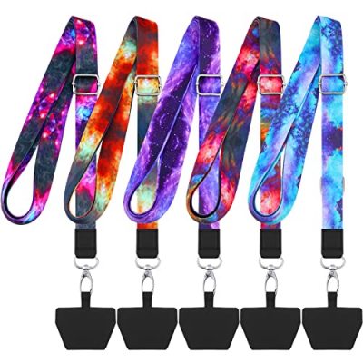 Keep your phone easily accessible with the 5 Pieces Phone Lanyard Universal Adjustable Neck Straps. This set includes 5 adjustable lanyards with T-shaped phone pads, making it perfect for personal use or as a thoughtful gift. The T-shape pad does not block the charging port, allowing you to easily charge your phone while using it. These lanyards are made of soft and sturdy polyester material, ensuring comfort and durability. With its universal design, it is compatible with most mobile phones and cases. The nylon lanyard can be adjusted to 28.4 inches, giving you the flexibility to use it as a neck strap or crossbody. Choose from a mixed color set with star patterns. Never misplace or drop your phone again with this convenient and stylish phone lanyard.