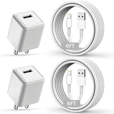 The iPhone Charger, Long 6FT Apple iPhone Charger is a reliable and efficient charging solution for your Apple devices. With its MFi certification, it ensures flawless compatibility with all Apple devices. The 6ft lightning cable is made from high-quality materials, making it sturdy and durable. It supports fast charging and data syncing up to 480Mbps. The compact and lightweight design of the 5W Apple charger makes it travel-friendly. The package includes 2 charger blocks and 2 lightning cables, providing ample charging options. The charger is compatible with various iPhone models, iPads, AirPods, and iPod touch. It comes with a hassle-free service, ensuring customer satisfaction.