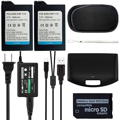 The TFSeven 2Pcs High Capacity Rechargeable Lithium Ion Replacement Sony PSP-110 Battery + AC Adapter 5V 2A Wall Travel Power Supply Compatible for PSP 1000 Series Accessories Kit is a must-have for Sony PSP-1000 owners. With a voltage of 3.7V and a capacity of 1800mAh, these rechargeable batteries provide a long-lasting power solution for your handheld gaming console. The package includes 2 replacement batteries, a wall charger, a PSP Memory Stick Adapter, a PSP Data & Power USB Cable, and a PSP protector case. The batteries are compatible with Sony PSP-1000 series models and come with a 24-month warranty and a 30-day money-back guarantee. Overall, this kit offers great value for money and is a perfect choice for PSP-1000 owners who want to extend their gaming sessions without worrying about battery life.