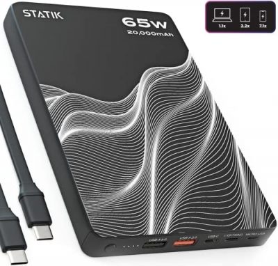 The Statik 65W Laptop Power Bank is a reliable and powerful solution for staying connected and productive on the go. With its 65W Power Delivery technology, it can charge your laptop at full speed while charging two other devices simultaneously. The huge 20,000mAh capacity ensures that you can charge your smartphone multiple times or give your laptop a full charge. The slim and durable metal body design makes it perfect for travel, fitting easily into your bag or backpack. While it may have some limitations such as lower than claimed capacity and limited visibility of remaining power, overall, it offers great value for its price. With the Statik 65W Laptop Power Bank, you’ll never have to worry about running out of power again.