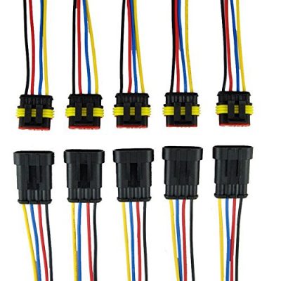 The ZYTC 4 Pin Way Car Waterproof Wire Connector Plug is a pack of 5 sealed waterproof connectors designed for use in motorcycles, scooters, cars, trucks, and various other vehicles. Each set includes a 4-way male connector and a 4-way female connector, both with 10cm wires. The connectors are made of PVC material and have a wire diameter of 2mm (18-20AWG). They are easy to connect and disconnect, making them ideal for DIY projects. The connectors are weatherproof and provide a secure and reliable electrical connection. However, the locking tabs can be delicate and may break when disassembled frequently.