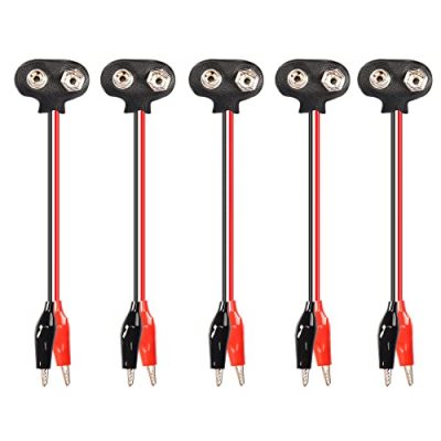 The PNGKNYOCN 9V Battery Snap to Alligator Clips Cable is a convenient and practical accessory for connecting power to small circuit boards, motors, LED lights, and other electronic devices. With its double alligator clip design, it allows for easy replacement of old connectors or damaged battery connectors. The cable is color-coded, with a red alligator clip representing positive and a black alligator clip representing negative. This cable is widely suitable for various applications in electrical engineering, power modules, breadboards, and more. The pack includes five cables, each measuring 15cm in length. Overall, it provides a reliable connection and is suitable for craft projects, DIY enthusiasts, and electronic hobbyists.