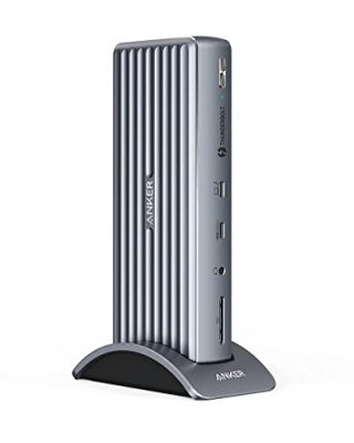 The Anker 577 Docking Station is a versatile connectivity solution for Windows laptops or non-M1 MacBooks. With its impressive range of ports, including dual Thunderbolt 3 ports, 4 USB-A ports, an HDMI port, SD card slots, and an Ethernet port, this docking station offers incredible expansion capabilities. It also provides various charging options, with 85W and 15W Thunderbolt 3 ports, as well as an 18W USB-C Power Delivery port. The Thunderbolt 3 port supports 5K@60Hz, while the HDMI port supports 4K@60Hz resolution. Overall, this docking station is a powerhouse for connecting multiple devices and enjoying crystal-clear streaming across dual displays. It comes with a 180W power adapter, Thunderbolt 3 cable, welcome guide, and an 18-month warranty.