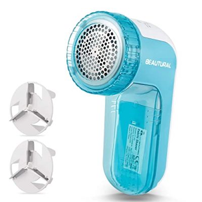 The BEAUTURAL Fabric Shaver and Lint Remover is a handy device for easily removing fabric fluff, lint, and bobbles from various garments and fabrics. With sharp blades and an expanded surface, it effectively restores the appearance of clothes by eliminating fuzz and pills. The shaver offers three shave heights, two speeds, and three shaving hole sizes to suit different fabric types. It features a blades safety mechanism lock for added safety during cleaning or accidental touching. The sharp and durable blades are long-lasting and can be replaced with the two extra blades included. The BEAUTURAL Fabric Shaver and Lint Remover is powered by batteries and comes with a blue color design. Its compact and portable size makes it convenient to use at home or while traveling. Overall, it is a highly rated product with positive customer feedback.