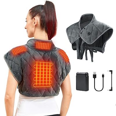 The Vofuoti Portable Heating Pad is a cordless heated neck and shoulder wrap that provides pain relief and relaxation. With a rechargeable battery and 3 heat settings, you can enjoy heat therapy on the go without being stuck in one place. The heating pad features 4 heating zones to cover the neck, shoulders, and upper spine, effectively soothing muscle tension and soreness. It has a weighted design for a snug fit and is secured with snaps and straps to prevent slipping. The pad also has intelligent security settings and a 365-day warranty. It's a perfect gift for anyone in need of pain relief or relaxation.