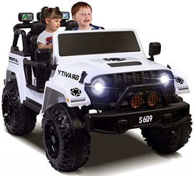 The ELEMARA 2 Seater XL Ride On Car for Kids is a thrilling and adventurous off-road UTV toy. With its 4WD capability and powerful motor, it effortlessly tackles various terrains. The two-seater design allows children to share the fun with a friend, while the remote control provides parents with peace of mind and allows them to maintain control. The car features LED lights for enhanced visibility, Bluetooth music connectivity for added entertainment, and a comfortable suspension system for a smooth ride. Made with durable materials and backed by excellent customer service, this ride-on car is a perfect gift for young adventurers. *Note: Battery life and remote control responsiveness may vary.*