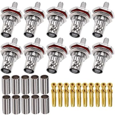 - Package includes 10 pcs of BNC Female nut bulkhead crimp connector